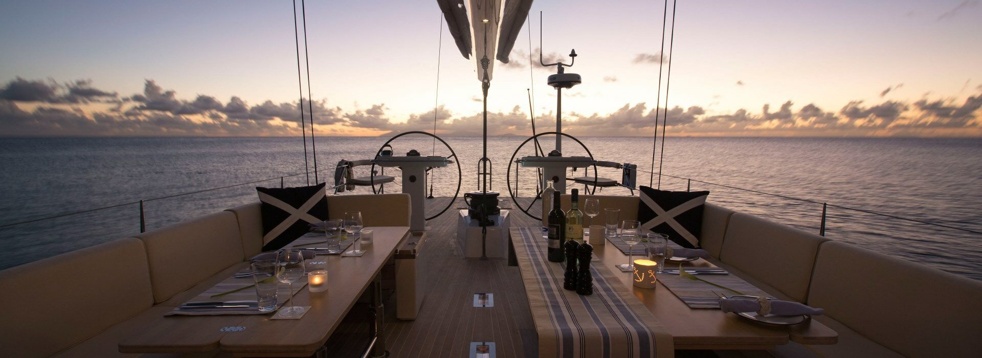 After a day of exhilarating sailing, retreat to the main salon featuring home cinema, Apple TV and Bose entertainment system, relax in the on-deck hammocks or dine under the stars in the central cockpit.